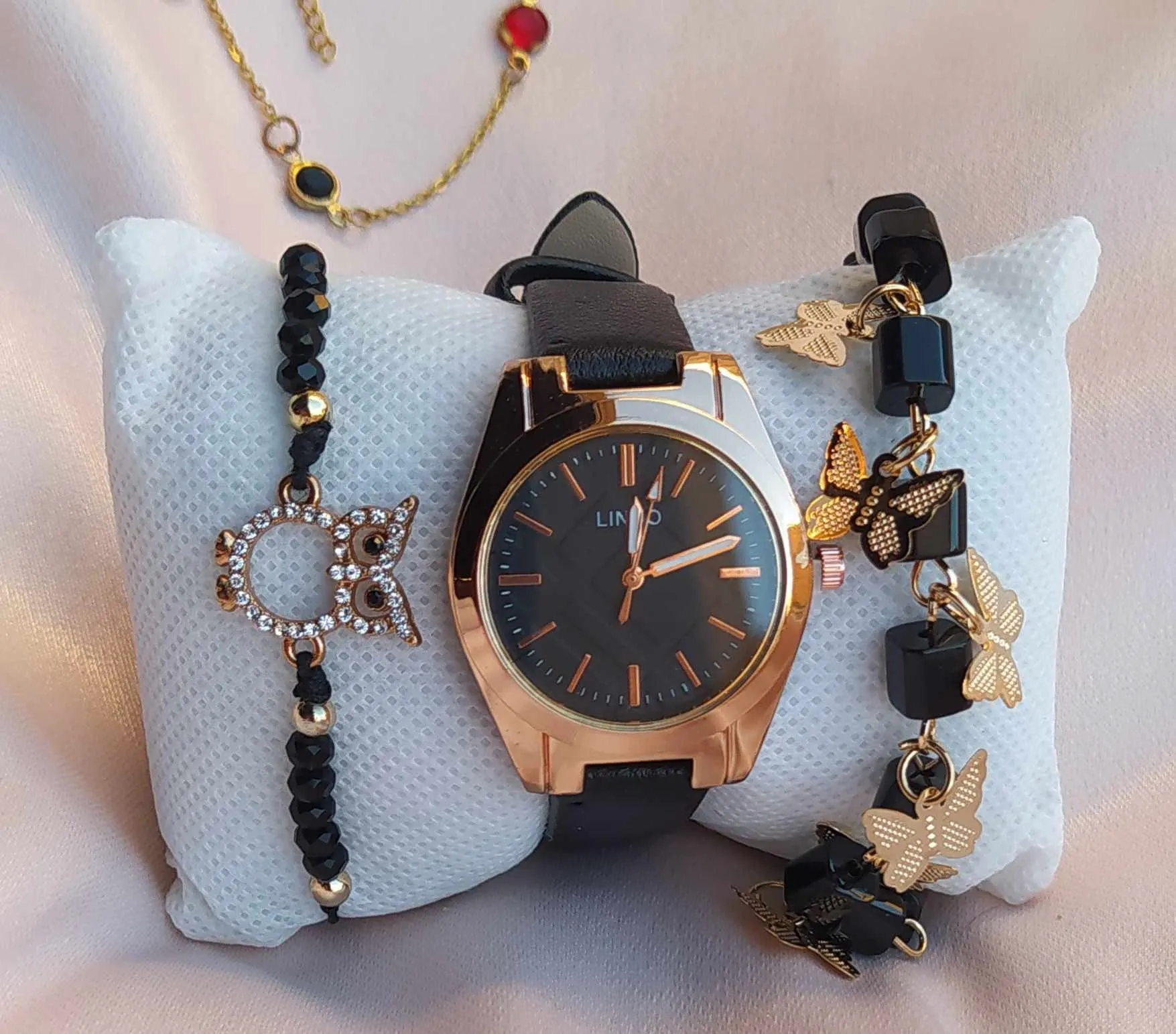 ✨ LINUO✨ • ساعة نسائية جلدية مضادة للماء والصدأ ❤️‍🔥 • تنقس على حساب اليد ✅️ • علبة + 2 براسلي هدية 🎁 • ضمان عام ✅